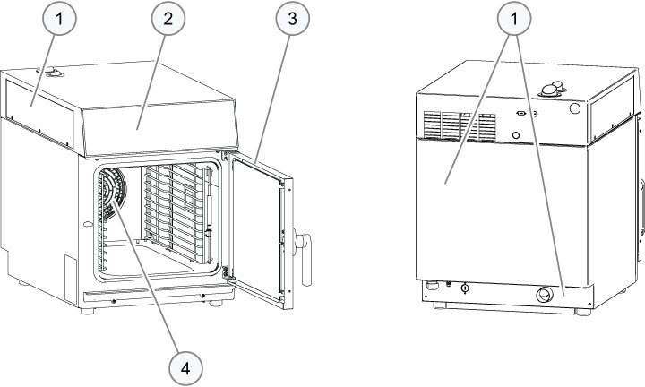 The following illustration shows a size 6.10 mini combi oven as an example for all appliances: