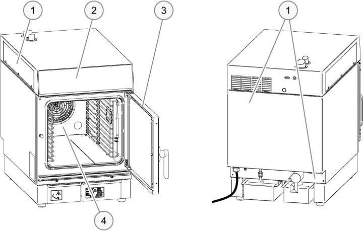 | 4 | Suction panel in cooking chamber; can only be removed using a tool | Prevents access to the moving fan and ensures good heat distribution | See 'Releasing and securing the suction panel' in the user manual |